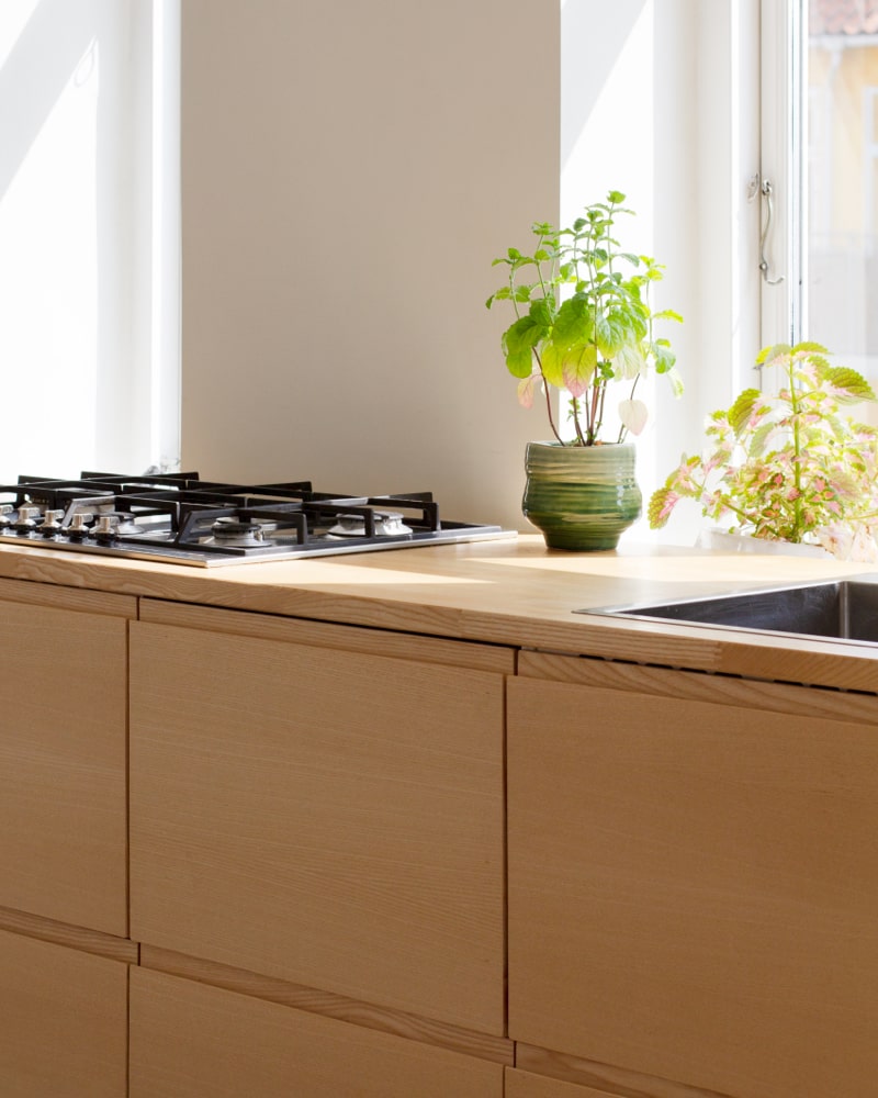 Træ er også et bæredygtigt valg: Det kan repareres, frem for at skulle udskiftes, og måltilpassede fronter kan forlænge livet på eksisterende køkkenskabe – perfekt til både renoveringer og nybyggeri.